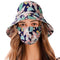 PALAY® Bucket Hat for Women with Face Mask, One Piece Bucket Hats for Women, Fashion Leaf Prints Summer Sun Hats for Women UV Protection Wide Brim Outdoor Hat for Cycling, Fishing
