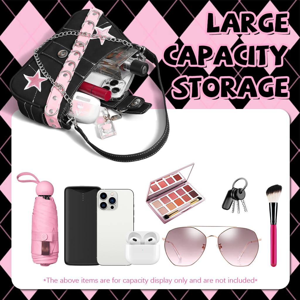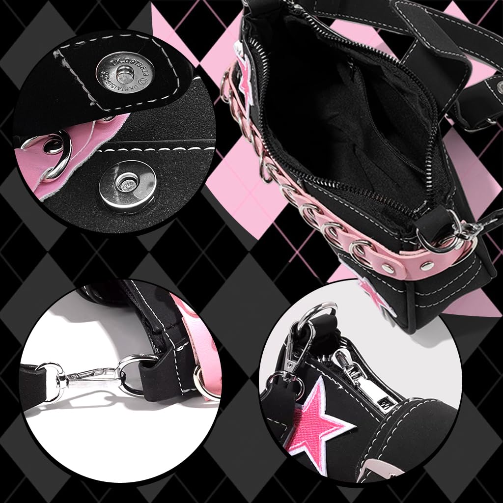 PALAY Girls Chic Shoulder Bag Canvas Handbag with Chain Charm Small Hobo Bag combines nostalgic Y2K charm with modern practicality in a 23x7x13cm design made for everyday elegance. Crafted from durable canvas with star patchwork and stylish letter print, it offers both a youthful and refined look. The versatile multi-carrying options include a detachable strap and chain handle, allowing comfortable wear as a crossbody or shoulder bag. A secure zipper paired with a snap button closure ensures belongings stay safe and easily accessible. Ideal for daily use, parties, or casual outings, this PALAY handbag blends convenience and fashion, highlighting the brand’s dedication to practical style and reliable quality.