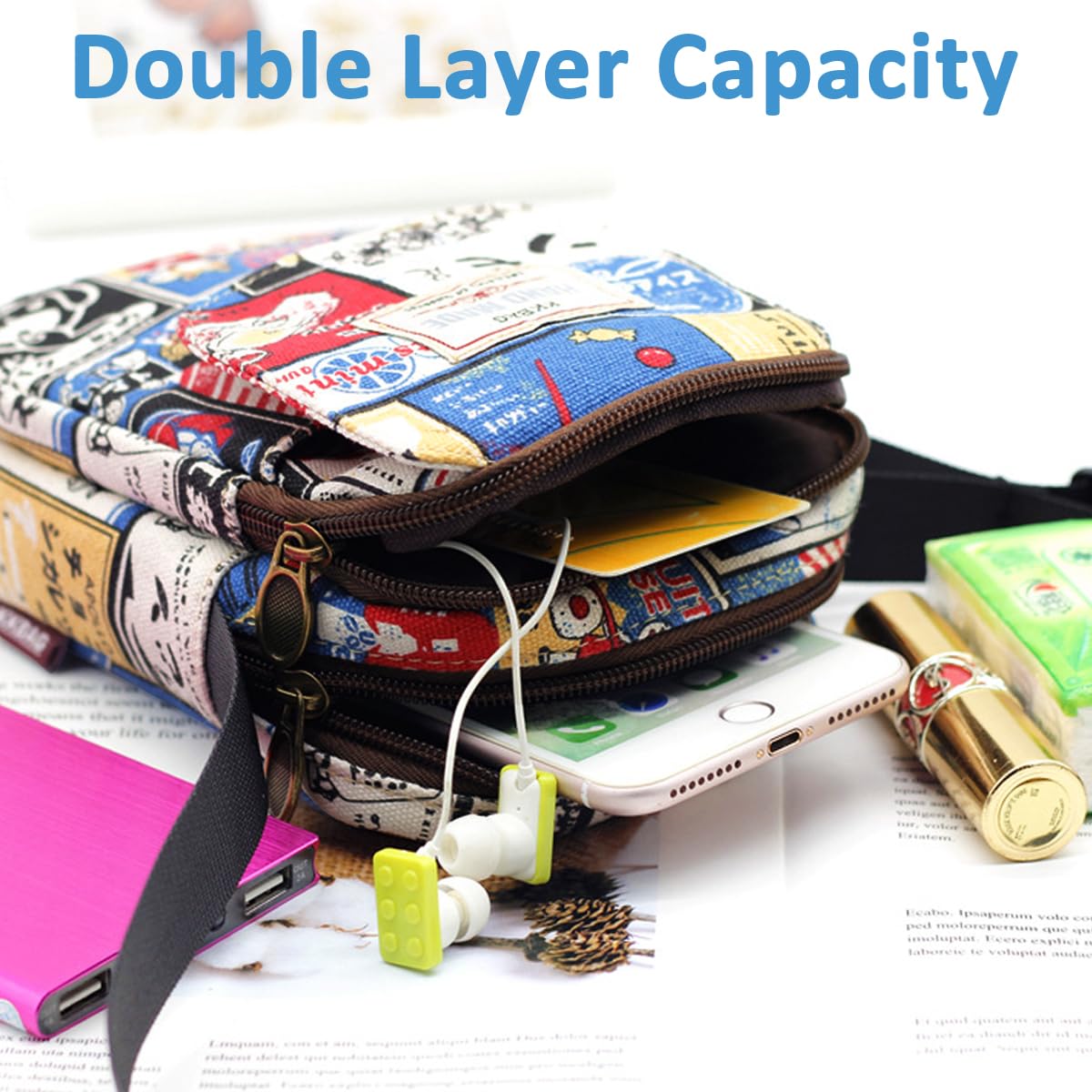 PALAY Cute Canvas Phone Sling Bag Small Casual Utility Bag Cartoon Vintage Print Crossbody Phone Multi Pocket Purse Mini Mobile Pouch combines nostalgic style with everyday usability. This vintage cartoon print phone sling bag is crafted from premium and durable canvas, offering dependable wear resistance and a textured finish. Despite its compact 12x6x17 cm size, it features multiple compartments, including two zipper pouches and one flip-up pouch for organized storage. The smooth metal zippers ensure security and easy access, while the adjustable shoulder strap provides comfort and versatility for daily use. Ideal for travel, shopping, or casual outings, this PALAY crossbody bag reflects reliable craftsmanship and thoughtful design for practical style lovers.