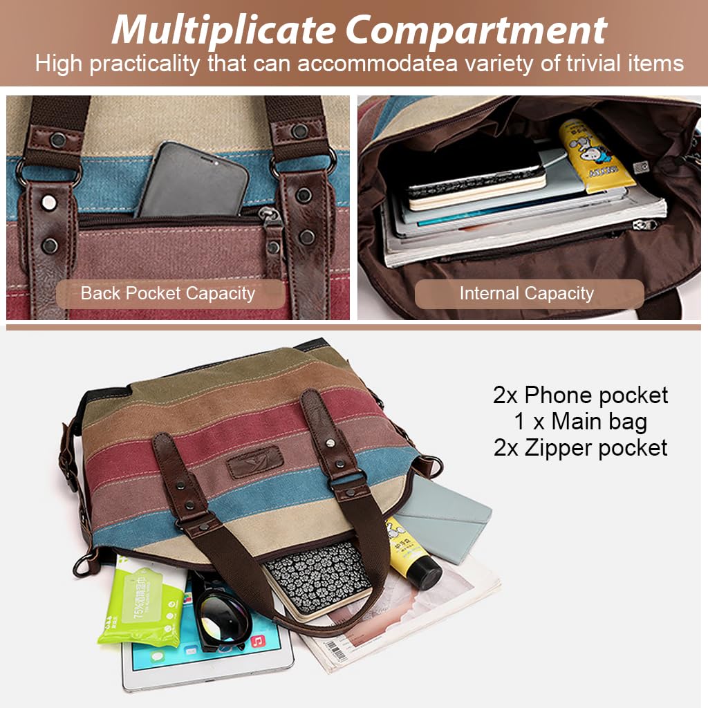 PALAY Canvas Tote Bag - Large Shoulder Bag with Belt features a stylish stripy print and durable canvas construction designed for everyday use. Measuring 36x12x37 cm, this fashion tote bag for women offers practical multi-way styling with a detachable shoulder strap that allows it to be carried as a handbag, shoulder bag, or crossbody. The reinforced handle and metal snap zipper closure provide reliability and secure storage, while interior pouches help organize items such as keys, cards, and phones. With its spacious capacity and comfortable carrying options, it is suitable for work, school, or travel, reflecting PALAY’s commitment to creating functional and fashionable daily accessories.