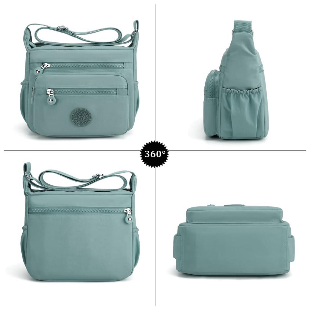 The PALAY Women's Aqua Solid Crossbody Bag combines style and functionality in a compact satchel design. Crafted from durable nylon, this multi-layer casual shoulder bag features an optimal size of approximately 21 cm in width, 26 cm in length, and 10 cm in height, offering one main zipper pouch, three organized compartments, and two side pockets for daily essentials. Its solid mint green color complements both casual and professional outfits, while the adjustable shoulder strap allows easy conversion between a crossbody and shoulder bag. Suitable for travel, work, or everyday errands, the bag provides practical organization and lasting wear, reflecting PALAY’s commitment to reliable craftsmanship and user comfort.