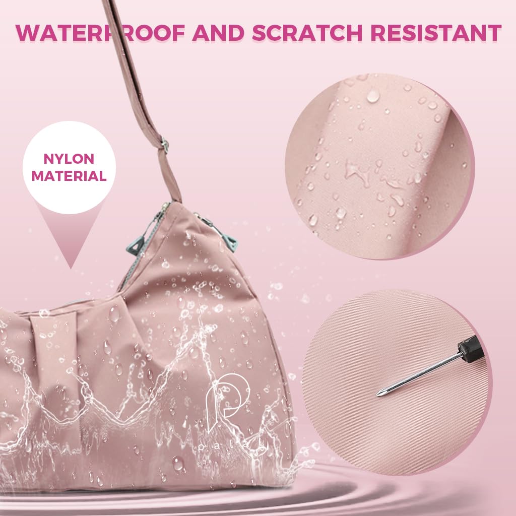 PALAY Women Gym Bag for Travel and Fitness with Shoe Compartment and Waterproof Nylon | Pink Shoulder Duffle