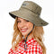 - VERSATILE STYLING DESIGN: The innovative flip-up brim feature adds a touch of personal flair and convenience to this bucket cap for women. With snap buttons to secure the sides, you can easily transition from classic protection to a cowboy hat silhouette. A chin strap with an adjustable toggle further personalizes the fit, ensuring stability during windy escapades or active moments.