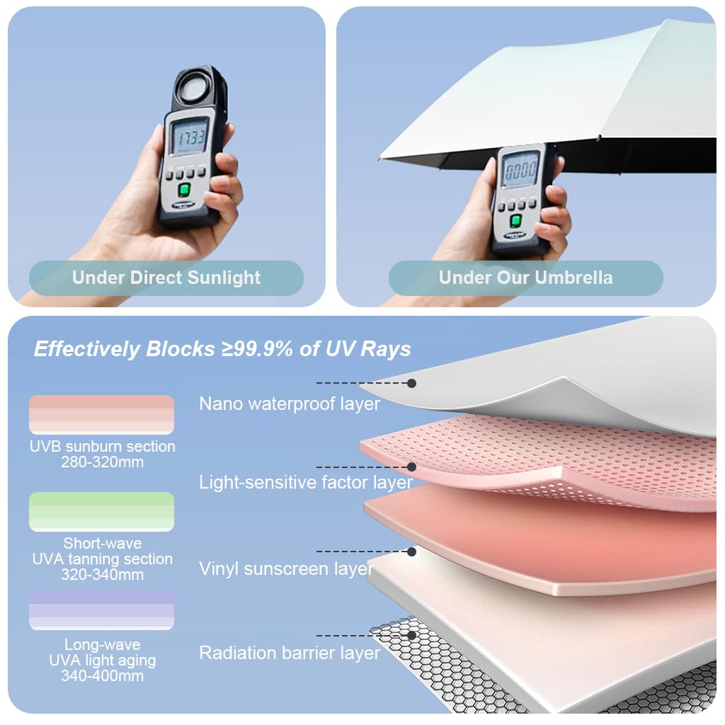 - Offers dual-purpose protection for both rain and sun with UPF 50+ coverage.