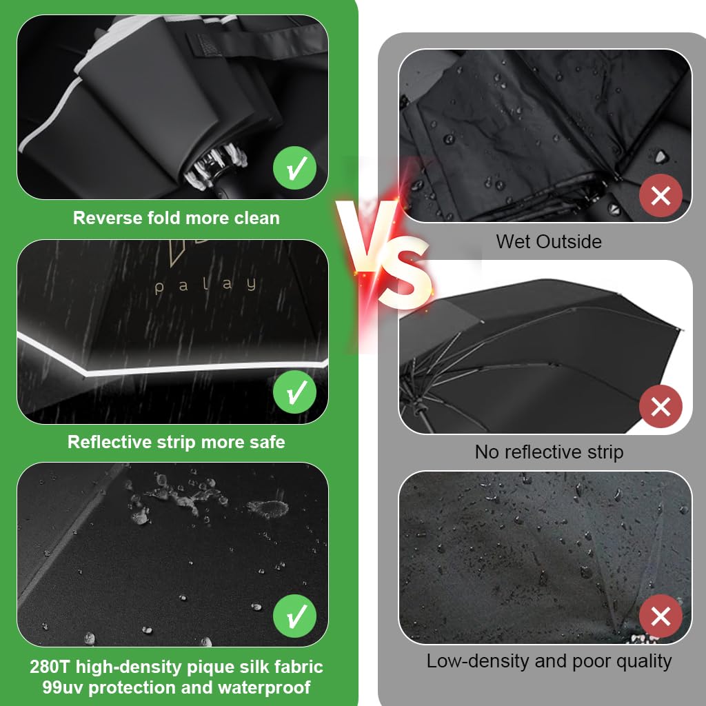 PALAY Umbrella for Men and Women with 50 in Canopy featuring 10 Dual Ribs and Reflective Strap