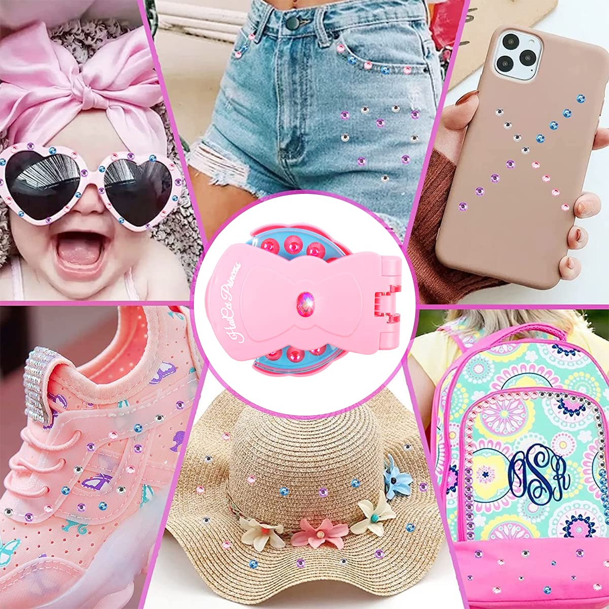 PALAY Hair Gem Stamper Quick Stapler for Girls is a creative hair styling tool designed to add sparkling rhinestones to hair in seconds. This rhinestone machine includes 180 glitter gems in assorted sizes, shapes, and colors, allowing for various unique and decorative hairstyles. It operates easily with a simple press, securing each gem gently onto the hair without causing damage. The tool is suitable for kids, teens, and adults who want to create festive or fashionable looks for parties, holidays, or everyday wear. Designed by PALAY, it offers a quick and safe way to personalize hairstyles with added shine and charm.