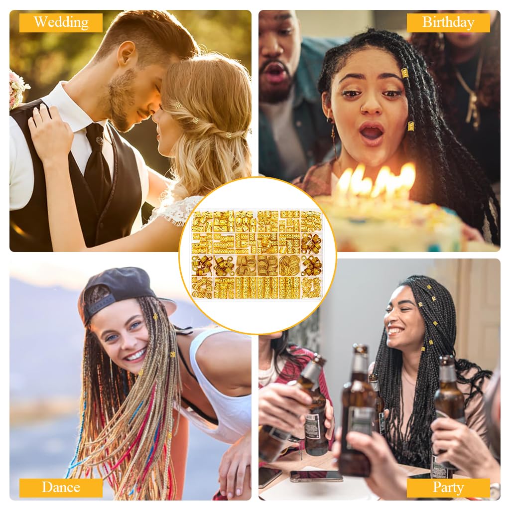 PALAY Hair Jewelry for Braids featuring 220 pcs metal rings and crown charms in gold for women