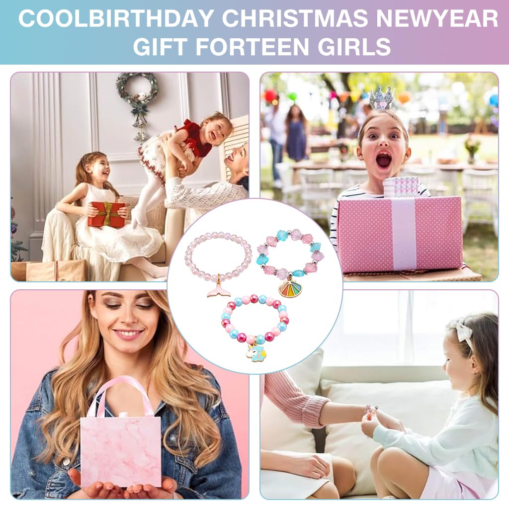 PALAY Beads Bracelet for Girls featuring Unicorn Mermaid Charms | 3 Pcs Friendship Gift Set
