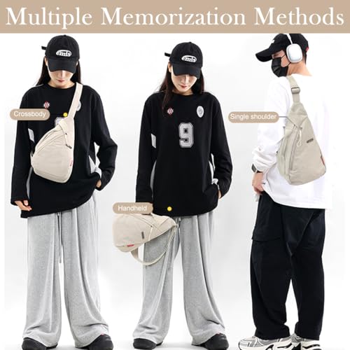 PALAY® Chest Bag for Women Men Fashion Nylon Lightweight Shoulder Front Back Sling Zipper Pouch Day with Handle Casual Beige Hiking Work 2PCS