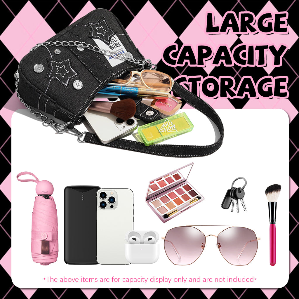 - STYLISH SWEET SHOULDER BAG FOR GIRLS: This chic shoulder bag effortlessly brings back the iconic Y2K era, boasting its trendy star patchwork and letter print design. The stitched button charms and chain accents add a touch of playful yet refined aesthetics, making it the ultimate choice for fashion-forward girls wanting to stay ahead of trends with a nostalgic twist.