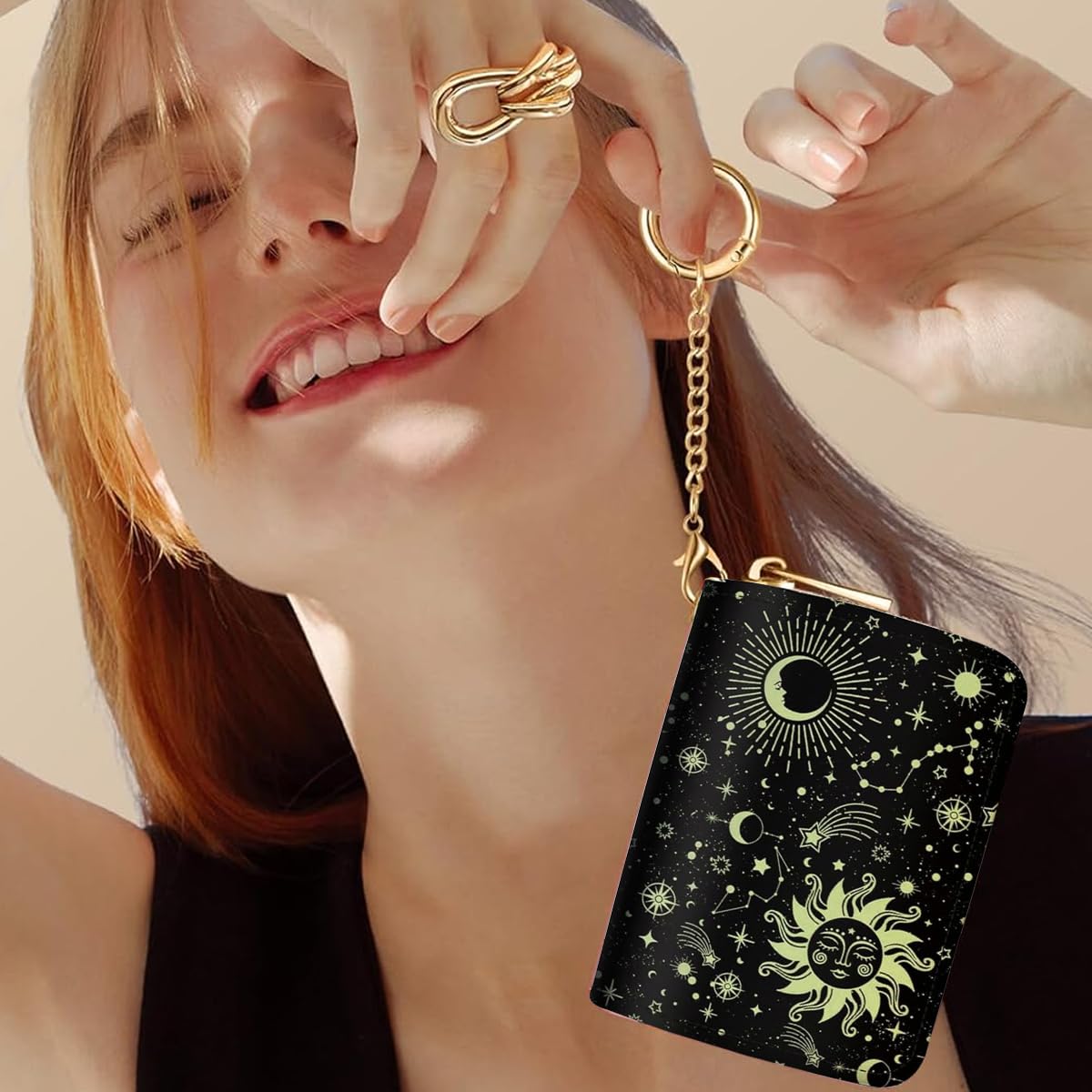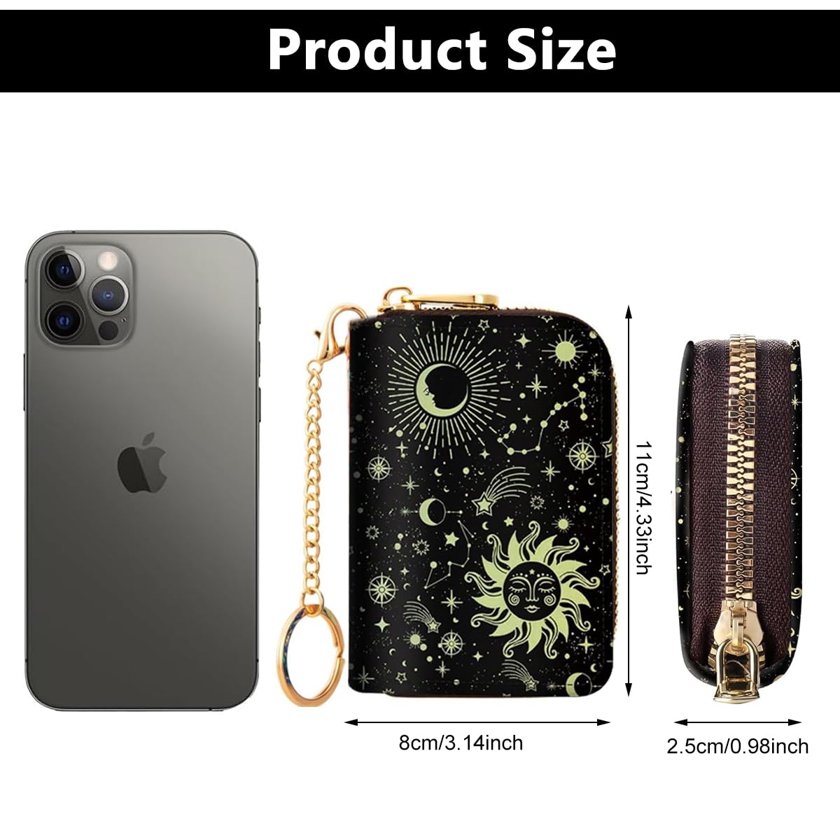PALAY® Credit Card Holder RFID Wallet is a compact card holder wallet for women designed with premium PU leather for a delicate yet durable finish. The fashionable golden constellation print adds elegance and individuality, making it a stylish everyday accessory. With 12 organized card slots, it allows easy access to credit cards, IDs, and membership cards while keeping them securely stored. Two dual cash compartments offer practical space for bills, coins, and receipts. Measuring 11 x 8 x 2.5 cm, the wallet also features a convenient keyring for effortless portability. This PALAY® RFID wallet combines function and design, ideal for women seeking organized, secure, and stylish card storage in daily or travel use.