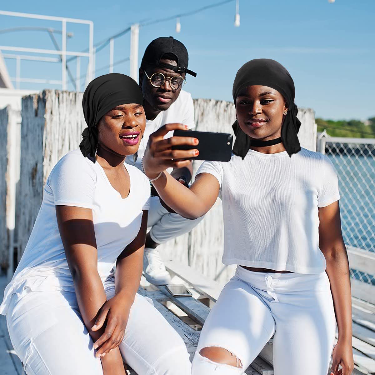 PALAY Head Scarf for Women featuring Pre Tied Elastic Design with Cotton Black 3 PCS | Comfortable Chemo Cap for Hair Loss