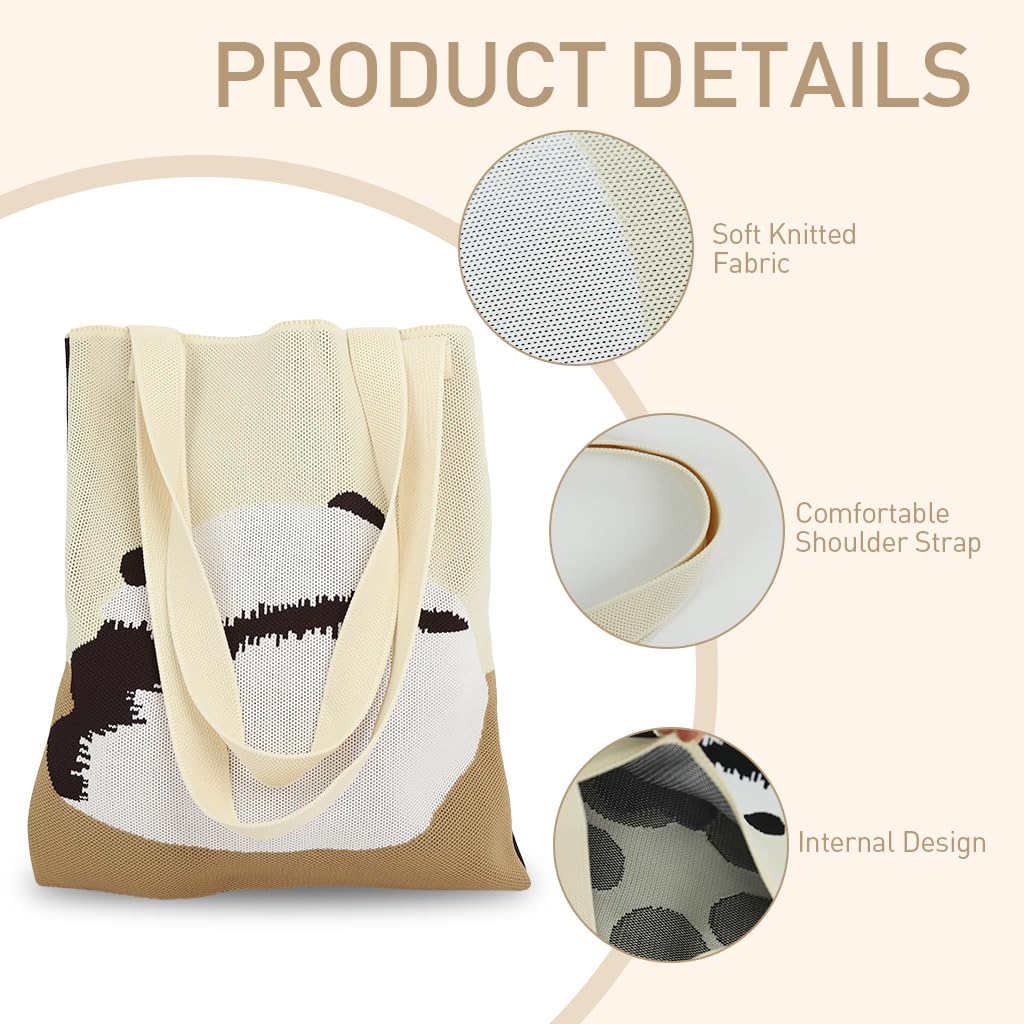 PALAY® Hand Bags for Women Stylish Cute Panda Print Tote Bags combine playful design with practical utility for everyday use. Made from high-quality acrylic fabric, the durable knitting construction ensures long-lasting wear and a soft finish suitable for any season. Its chic double-sided knitting design features a cute panda motif on one side and a charming flower pattern on the other, enhanced by a warm beige background. Measuring 30.5 x 37 cm, the spacious tote accommodates books, groceries, and daily essentials with ease. Suitable for office, college, shopping, or travel, PALAY® offers dependable quality and versatile functionality for women seeking comfort and style in one bag.