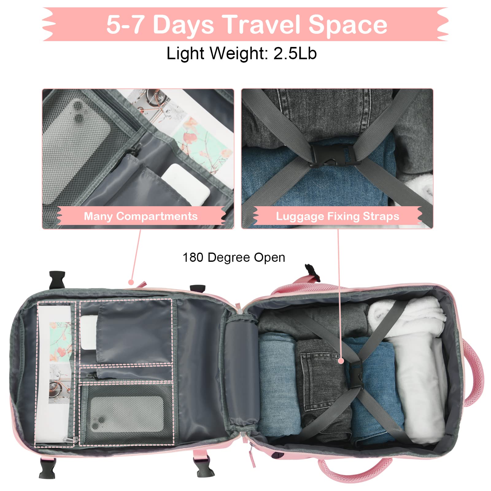 • Its expandable structure allows capacity adjustment from 20L to 35L for various packing needs.