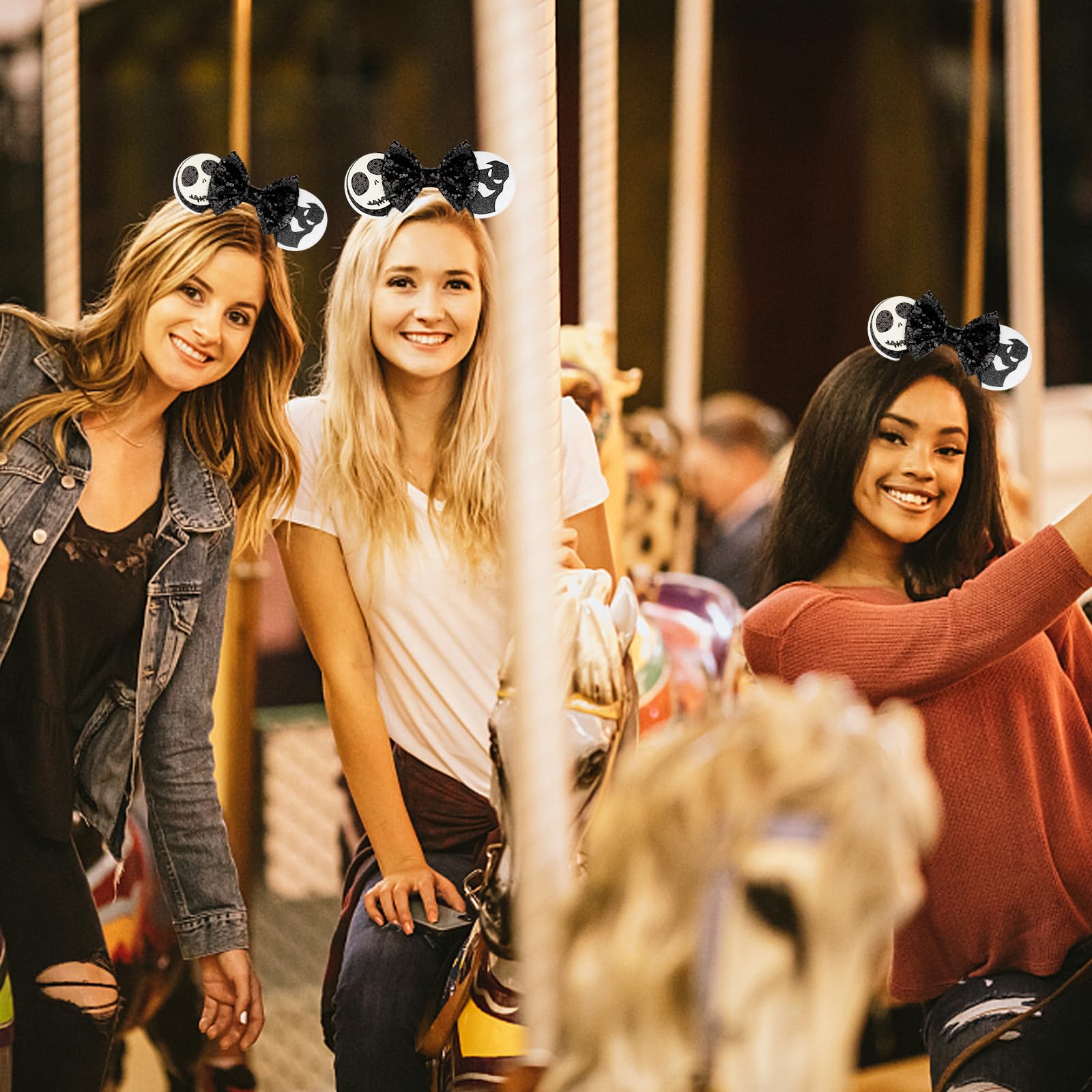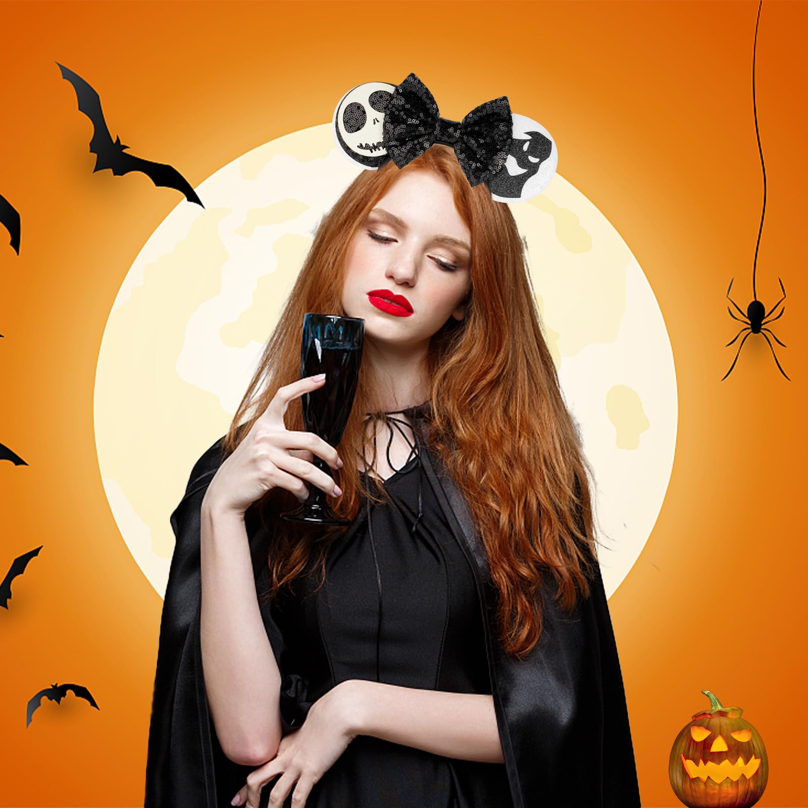 PALAY® Mic-Ky Mouse Hairband for Girls, Spooky Skull Ghost Halloween for Girls Halloween Sequin Bow Headband Costume Accessories Cute Ears Hair Accessories for Girls Women Party Festivals Hairband