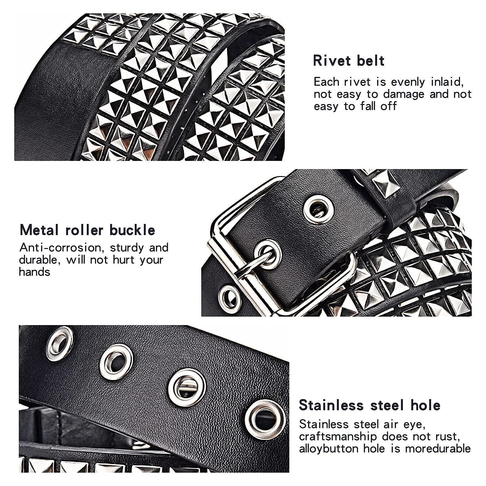 - Designed with metal studs for a distinctive punk rock appearance.