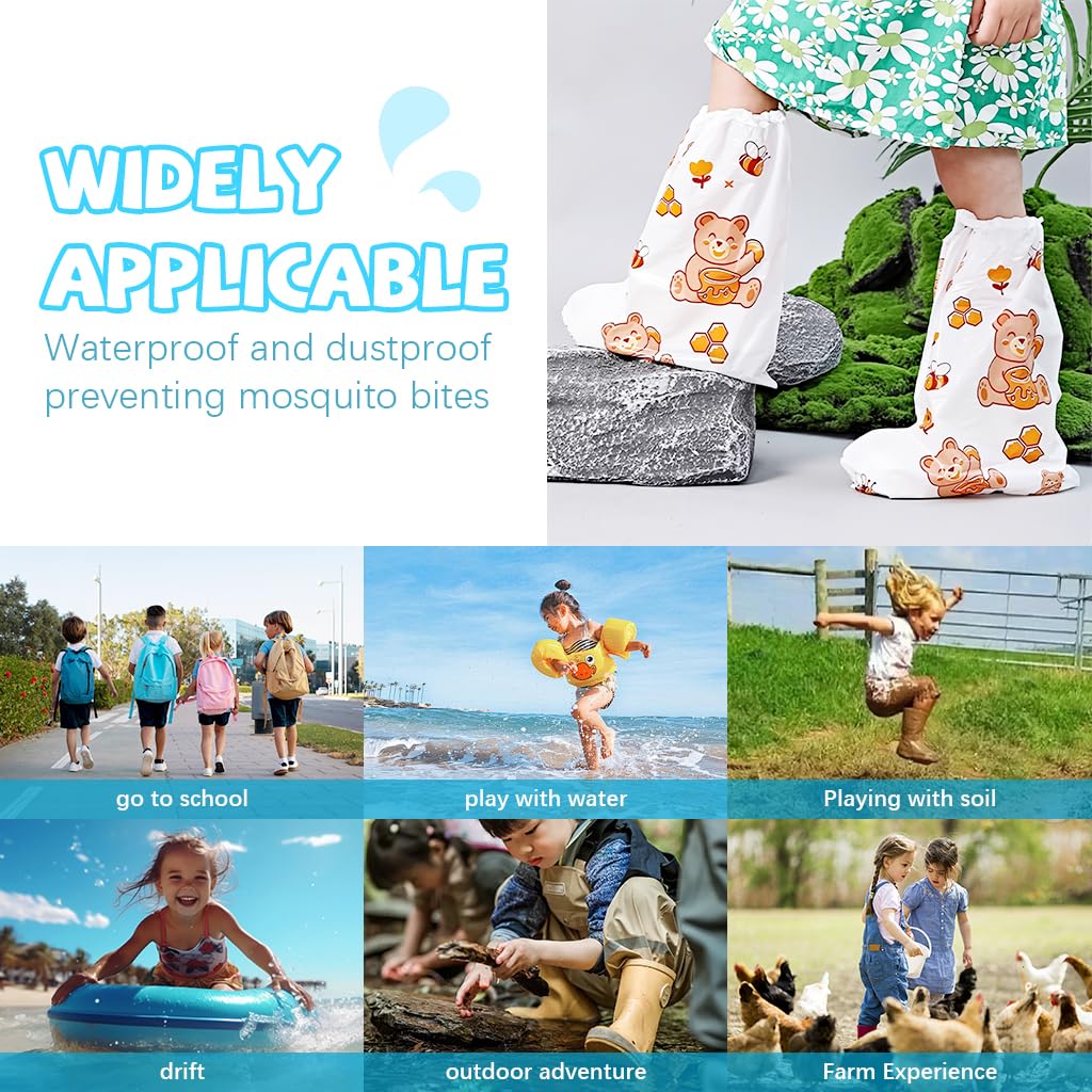 PALAY Rain Shoe Covers for Kids with Elastic Collar and Cartoon Style | 3 Pairs 28 cm Fit