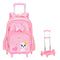 PALAY® School Backpack Girls School Backpack on Wheel Cute Cartoon Print School Backpack Detachable Wheel Stand with Puller School Gift Backpack for 6-12 Years Old