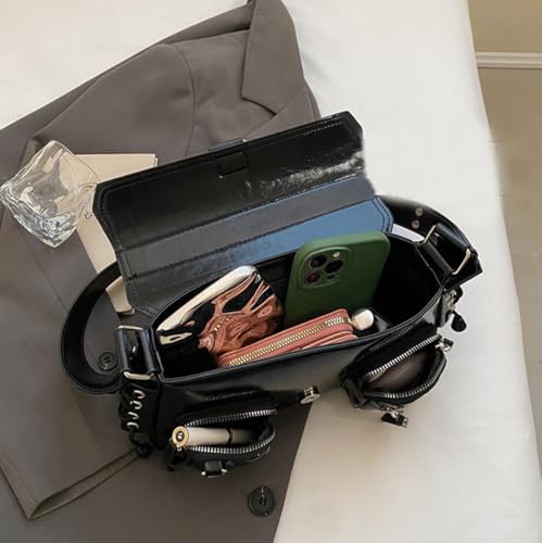 PALAY® Shoulder Bag for Women Black PU Hobo Fashion Dainty Casual Hand Chic Punk Multipocket Zip-up Evening Bag 27x7x16cm 2PCS