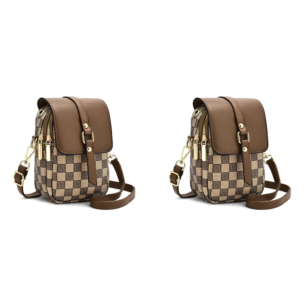 PALAY Sling Bag for Women Crossbody Phone Purse is a compact and stylish PU leather mobile holder designed for convenience and elegance. Crafted in a brown checked print with golden hardware, it fits most smartphones up to 6.7 inches, including models like the iPhone 15 Pro Max and Google Pixel 6. Its intelligent multi-layer design includes a snap-closure phone pocket and an inner compartment for small essentials such as keys, cards, and lipsticks. Suitable for daily shopping, travel, or casual outings, this mini shoulder bag offers both style and practicality. The PALAY design reflects thoughtful craftsmanship, ensuring reliable use and a fashionable accessory for everyday activities.