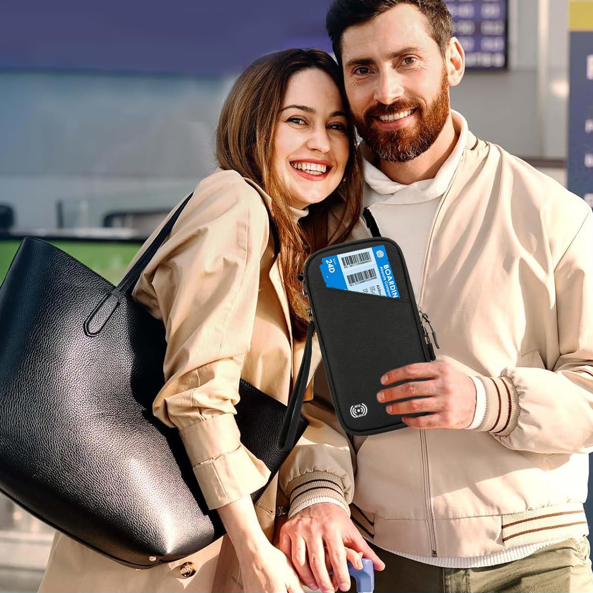 - Designed with multiple compartments to neatly organize travel essentials such as passports, cash, and phones.