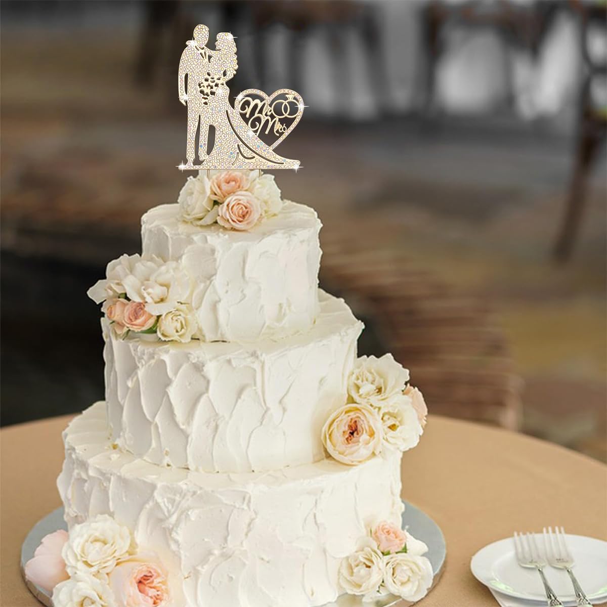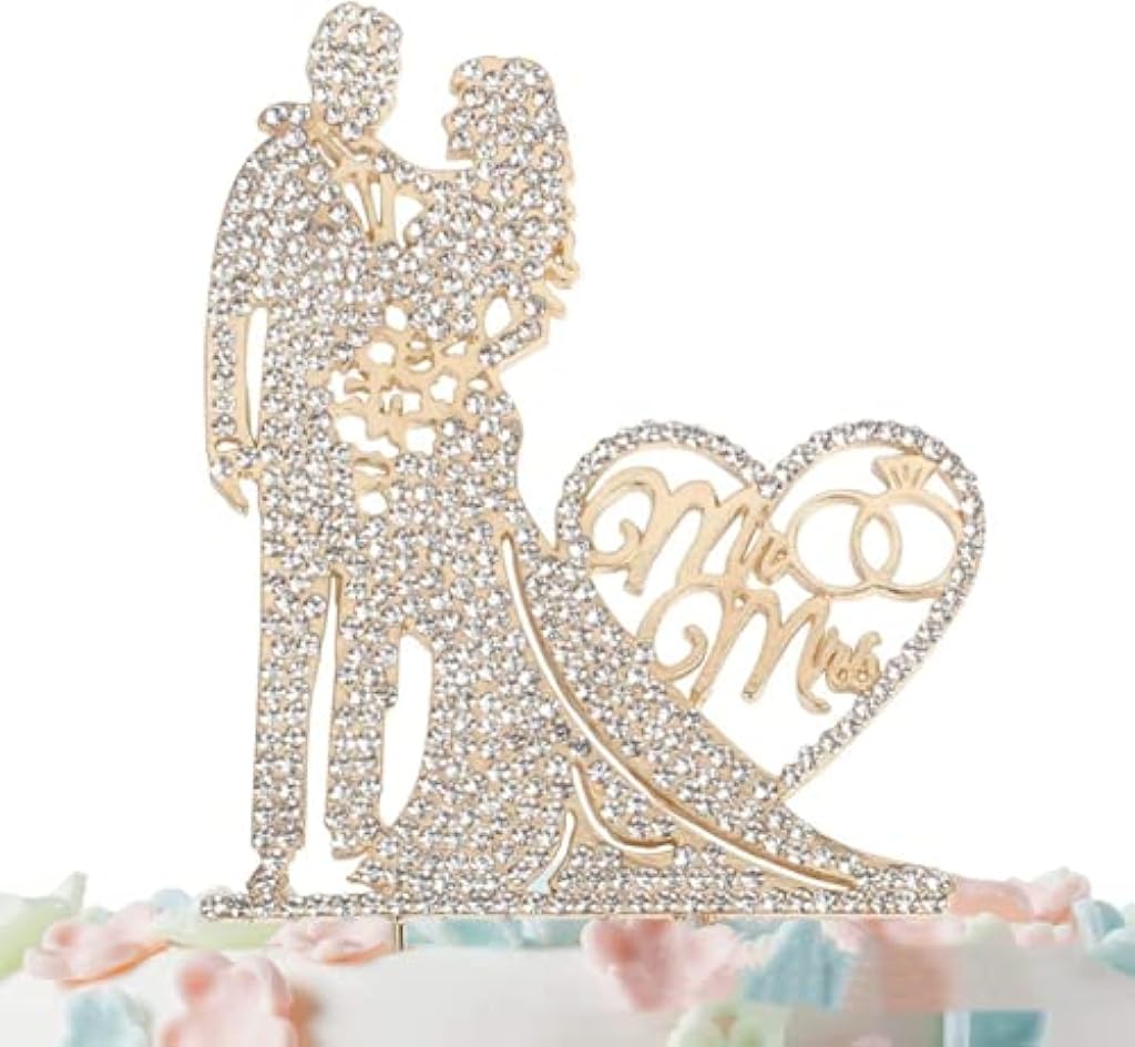 - EXQUISITE RHINESTONE EMBELLISHMENTS: This romantic metal cake topper is adorned with dazzling rhinestones that capture and reflect light beautifully. Designed to be the centerpiece of your cake, the sparkling embellishments make this topper an eye-catching decorative element, perfect for adding a touch of glamour to any wedding celebration.