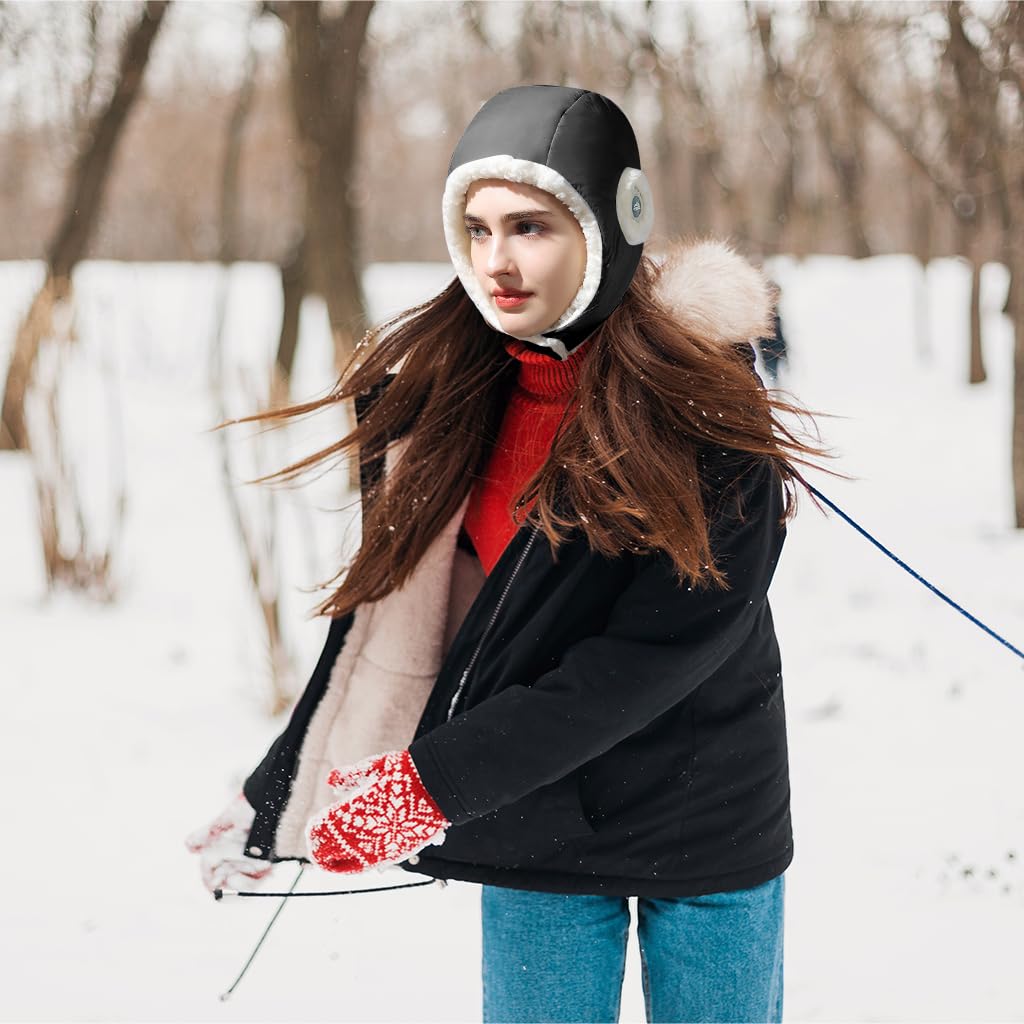 PALAY Thermal Winter Ski Hat for Men with Adjustable Earflap and Cotton Fleece Liner | Windproof Black Cap for Outdoor Sports