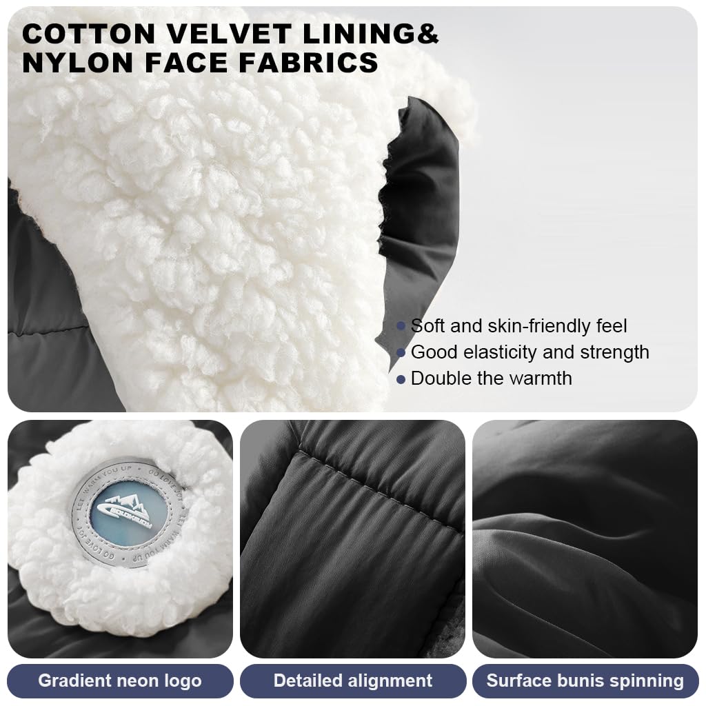 - Stylish black design suits various winter outfits and outdoor sports such as skiing or hiking.